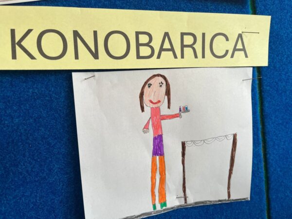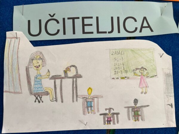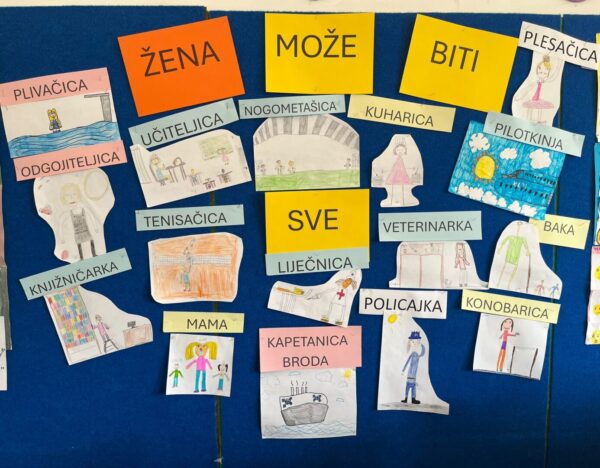 Razgovorom o jednakosti spolova i podjeli poslova zaključili su da su danas žene ravnopravne i da svi zajedno rade u kući, nema podjele poslova na muške i ženske. Nakon razgovora crtali su različita zanimanja koja rade žene.