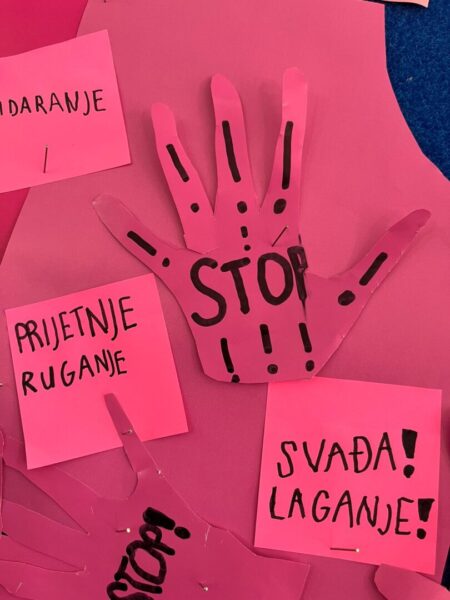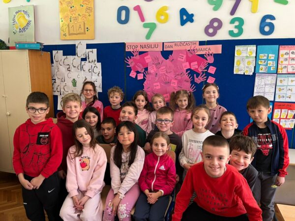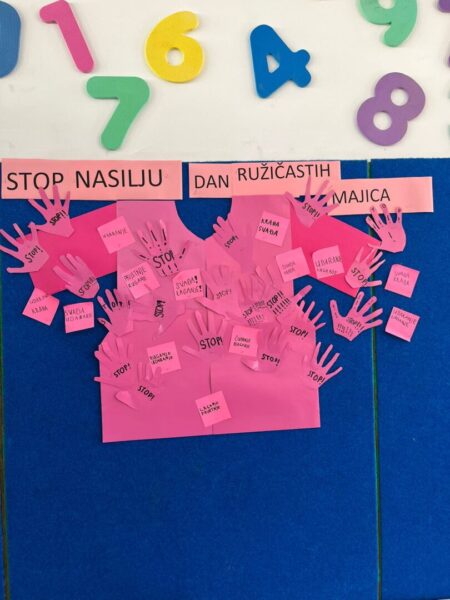 Pogledali smo prezentaciju, razgovarali o vršnjačkom nasilju i rješavanju problema. Učenici su došli u ružičastim majicama u znak potpore vršnjačkom nenasilju.