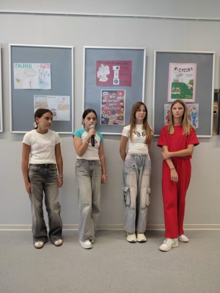 U prvom dijelu šezdeset je učenika predstavljalo svoje postere na temu zašto vole učiti strane jezike. Sudjelovale su i učenice 6.B razreda naše škole: Linda Baljak, Paula Borovac, Nika Đondović i Anabela Jakus. Pod vodstvom učiteljice Julije Trumbić predstavile su poster na temu njemačkoga jezika i kulture.
