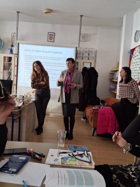 Osnovni seminar medijacije bio je namijenjen učiteljima, nastavnicima, stručnim suradnicima, ravnateljima, odgajateljima, kao i svima izvan sustava odgoja i obrazovanja koji žele unaprijediti komunikacijske vještine i rješavanje sukoba. Iz naše škole edukaciji su prisustvovali ravnateljica Ines Budić te dvije učiteljice- Dragana Plosnić i Katarina Vojnović. Jedna od njih, Katarina,
