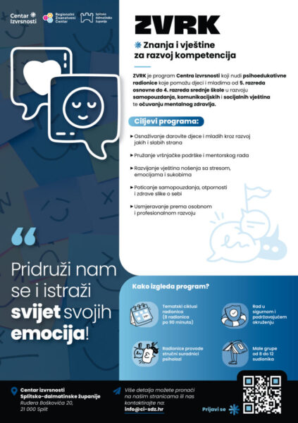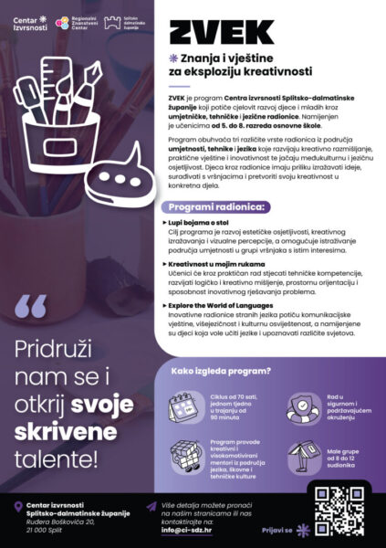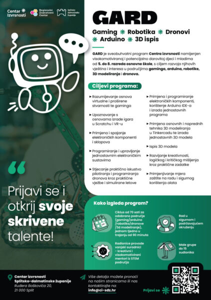 Regionalni znanstveni centar Adriatic otvara vrata svim zainteresiranim učenicima u novim programima kroz sudjelovanje u inovativnim i kreativnim radionicama za djecu i mlade od 5. do 8. razred OŠ.Na sljedećim poveznicama možete pronaći sve detalje o provedbi programa kao i prijavne obrasce koje je potrebno popuniti za sudjelovanje u jednom ili više programa: