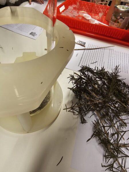 Izolacija eteričnih ulja iz ubranog ružmarina iz školskog vrta.
